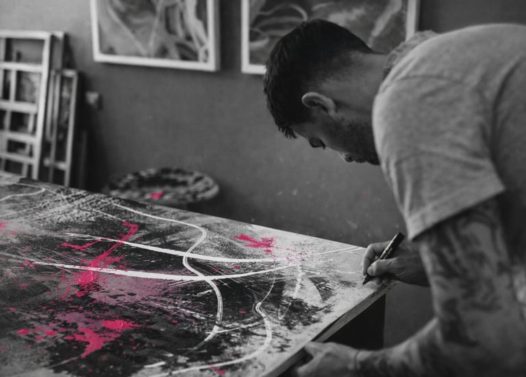 Trabajo cada obra con tiempo, cuidado y coherencia. No sigo modas ni produzco en serie: creo imágenes honestas, pensadas para durar.